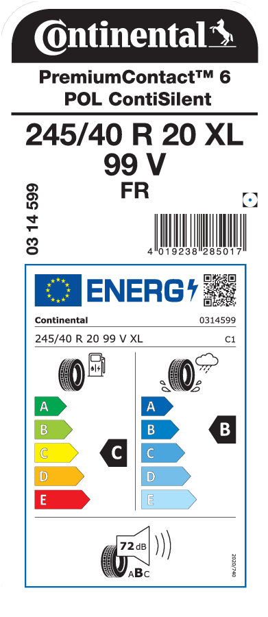 | Reifengrößenbezeichnung | 245/40 R 20 |