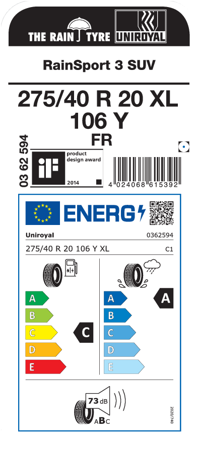 | Reifengrößenbezeichnung | 275/40 R 20 |