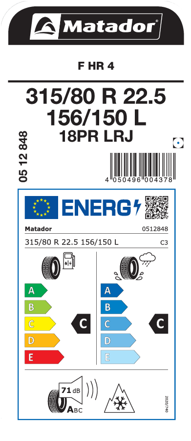 | Reifengrößenbezeichnung | 315/80 R 22.5 |