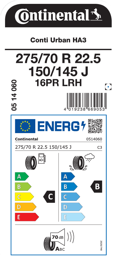 | Reifengrößenbezeichnung | 275/70 R 22.5 |