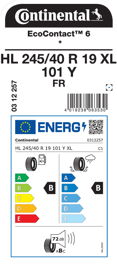 Tyre size designation 245/40 R 19