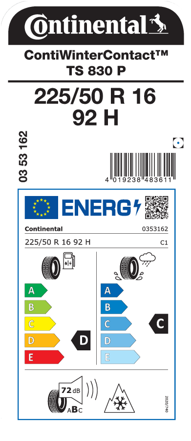 Commercial name or trade designation ContiWinterContact TS 830 P