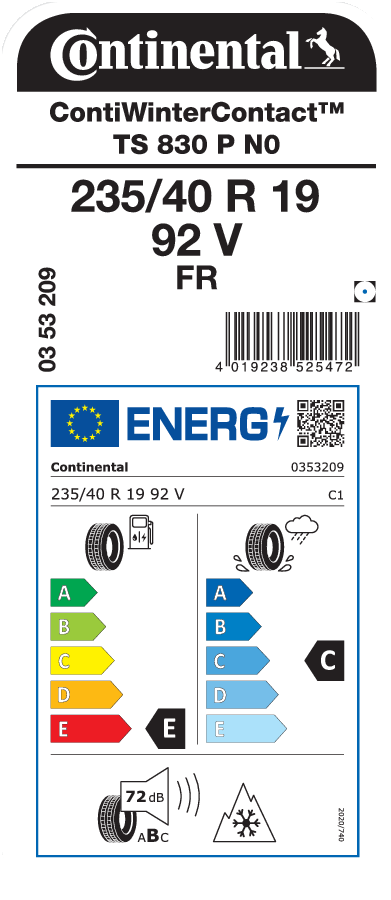 | Tyre size designation | 235/40 R 19 |