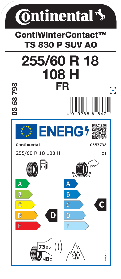 | Commercial name or trade designation | ContiWinterContact TS 830 P |