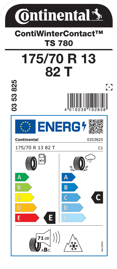 | Commercial name or trade designation | ContiWinterContact TS 780 |