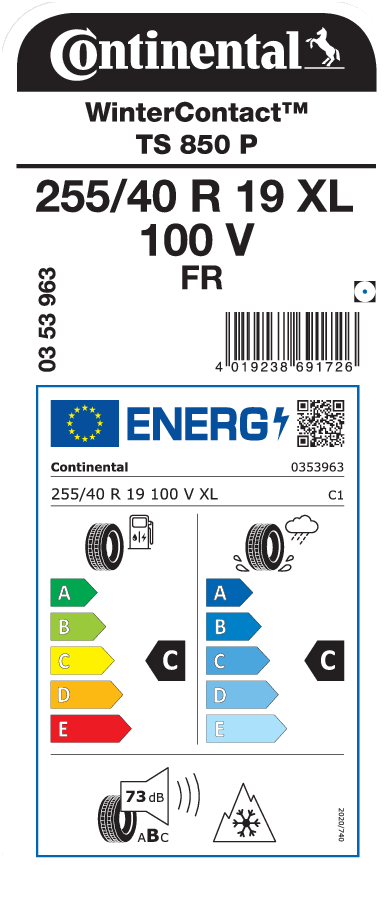 | Tyre size designation | 255/40 R 19 |
