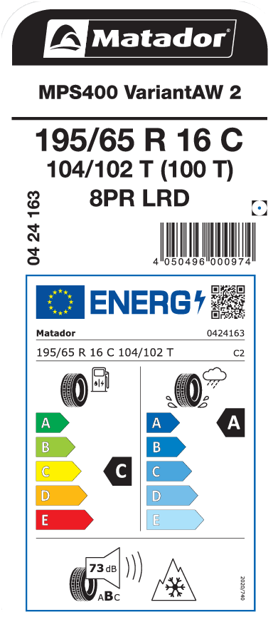 Tyre size designation 195/65 R 16