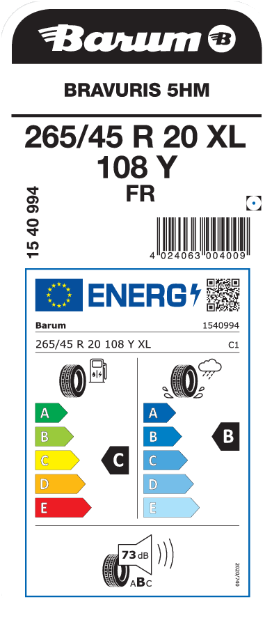 | Tyre size designation | 265/45 R 20 |