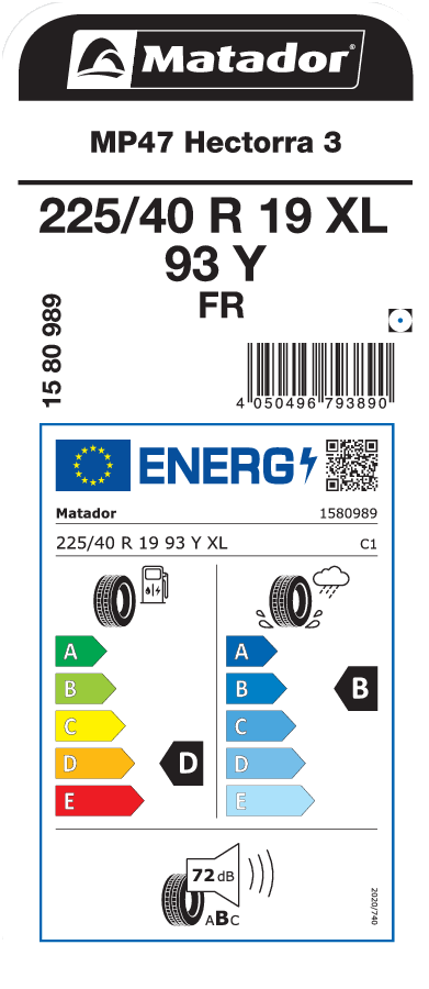 | Tyre size designation | 225/40 R 19 |