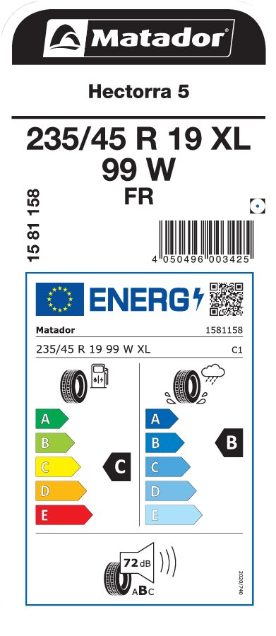 Tyre size designation 235/45 R 19