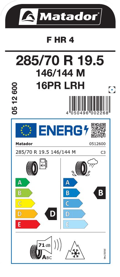 | Tyre size designation | 285/70 R 19.5 |