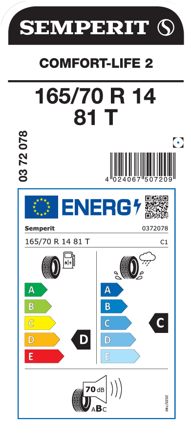 Tyre size designation 165/70 R 14
