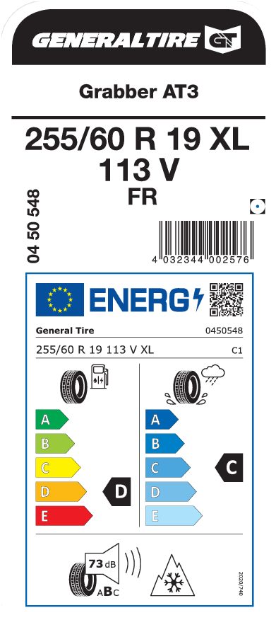 Tyre size designation 255/60 R 19