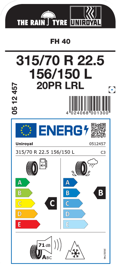 Tyre size designation 315/70 R 22.5