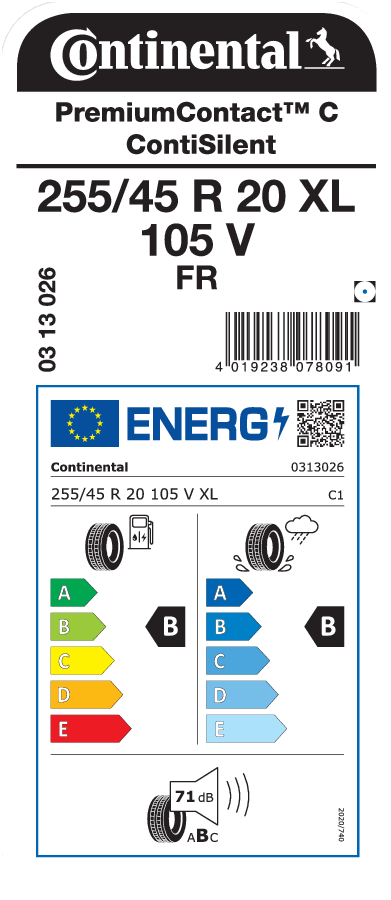 Tyre size designation 255/45 R 20