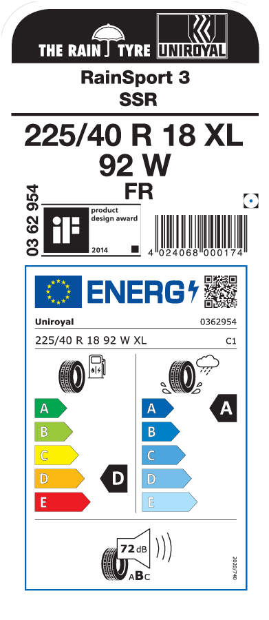 Designação do tamanho do pneu 225/40 R 18