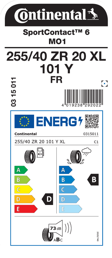 Tyre size designation 255/40 ZR 20