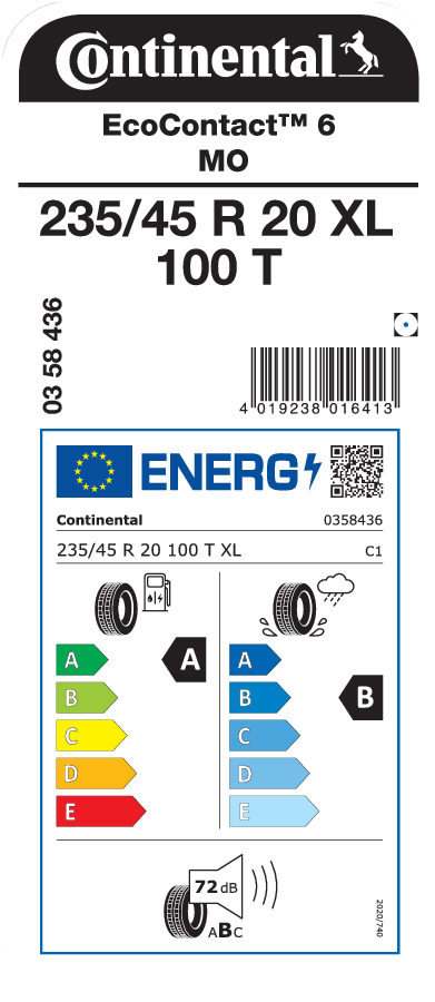 Tyre size designation 235/45 R 20