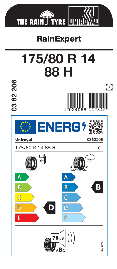 Tyre size designation 175/80 R 14